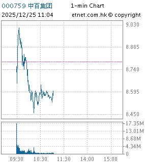 N 000759 | ZHONGBAI GROUP | 8.790 | -0.120 | -1.35% | 2.238B | 245.076M | -- | |